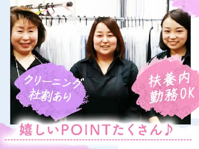 \主婦(夫)さん多数活躍中♪/クリーニング店受付スタッフ大募集!扶養内勤務OKで、家事や育児のスキマ時間に働ける◎クリーニング割引もあり!週3日~